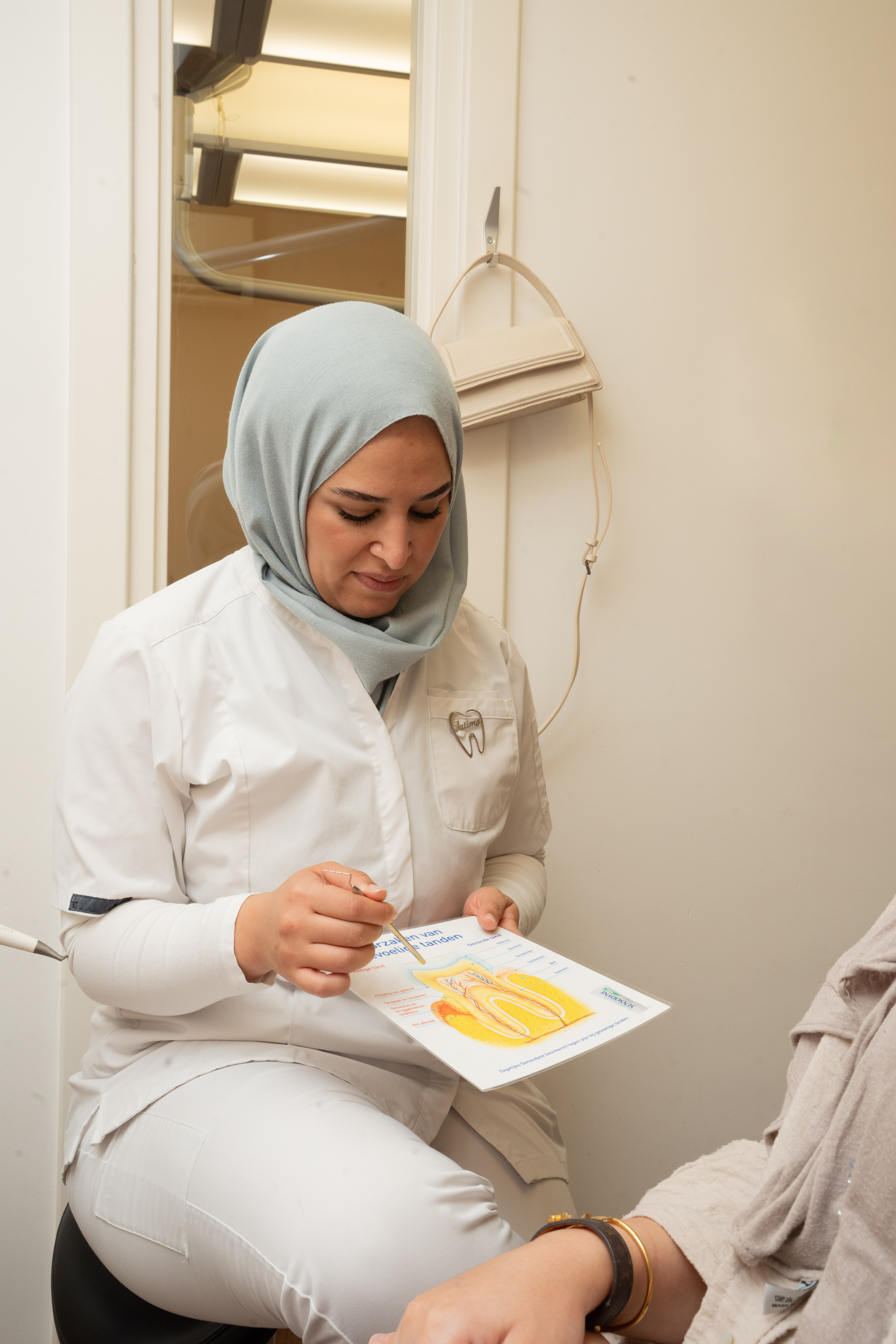 We beoordelen slijtage (knarsen, zuren, poetsdruk) en geven praktisch advies om verdere schade te beperken. Indien nodig verwijzen we door voor aanvullende behandeling.